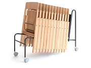 Židle Whippy se vyznačuje pečlivým řemeslným zpracováním a udržitelnou výrobou. Tato židle, vyrobená z vysoce kvalitní certifikované břízy, jasanu nebo dubu, kombinuje nadčasovou eleganci severského designu s pohodlím skládacího mechanismu, který nabízí všestrannost pro snadné skladování a přepravu. Tato funkce je obzvláště výhodná v místech, která vyžadují časté přeskupování nebo dočasná řešení sezení. K dispozici je transportní vozík pro snadné skladování a přepravu a také spojka řad, která umožňuje propojení více židlí pro různá uspořádání akcí, čímž zajišťuje soudržné a organizované uspořádání sezení. Pro větší pohodlí je k dispozici také čalouněná verze sedáku. Po složení lze židli přepravovat v plochém stavu, což šetří místo a snižuje její uhlíkovou stopu. Inno kompenzuje používání dřeva v tomto a dalších dřevěných výrobcích účastí na projektech zalesňování, které pomáhají zmírňovat dopady změny klimatu.